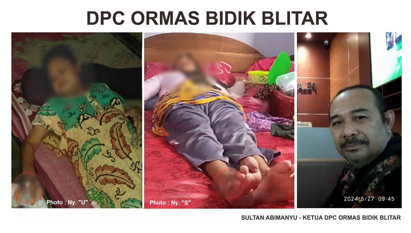 Ny.”U” mengalami pemotongan organ tubuh pada Jari tengah tangan kanan sedangkan Ny.”S” mengalami pemotongan organ tubuh Jentik kaki sebelah kanan. Akibat pemotongan itu jari tengah Ny.”S” mengalami pembusukan dan terpaksa harus dilarikan ke rumah sakit untuk selanjutnya diamputasi, terang Ketua DPC ORMAS BLITAR ” Sultan Abimanyu melalui surat laporan kegiatan investigasi yang dilayangkannya Ke DPP ORMAS BIDIK. (Senin, 27/05).