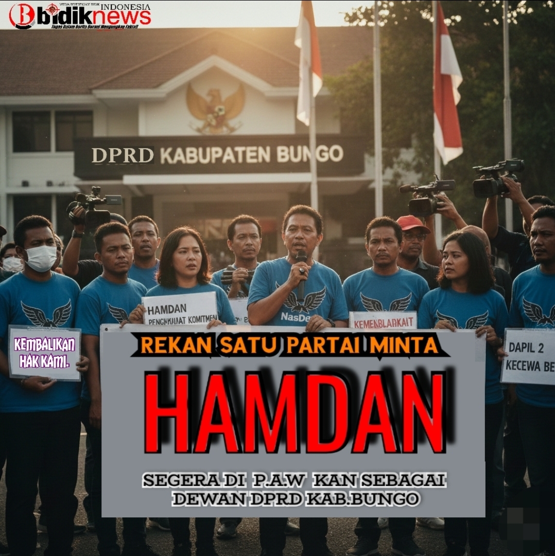 BIDIKNEWS – INDONESIA // KABAR DAERAH MUARA BUNGO – Kemenangan besar Partai NasDem di Kabupaten Bungo pada Pileg 2024 yang berhasil mengamankan kursi Ketua DPRD, kini mulai dibayangi awan mendung. Bukan karena tekanan eksternal, melainkan karena isu internal yang menyengat: dugaan pengkhianatan dan pengabaian komitmen oleh salah satu kadernya, Hamdan, yang kini menjabat sebagai Ketua Komisi III DPRD Kabupaten Bungo.