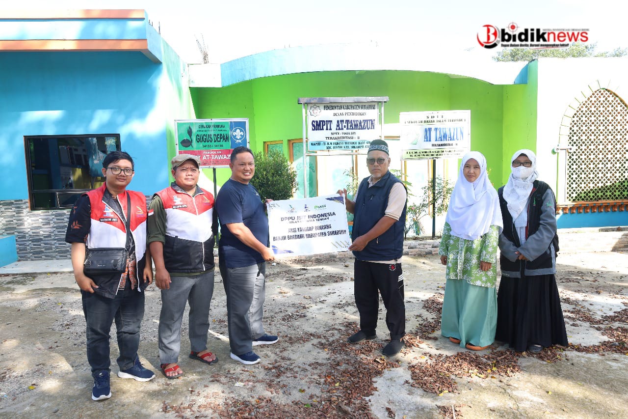 BIDIKNEWS-INDONESIA | Liputan-Khusus Sukabumi Kamis 02/1/2025 – Jaringan Sekolah Islam Terpadu (JSIT) Indonesia Wilayah Jawa Tengah melalui Dompet Peduli Pendidikan dan Ummat (DPPU)-Lazis Jateng menyalurkan sebanyak Rp50 juta bantuan untuk korban banjir di Sukabumi. Bantuan tersebut diserahkan secara langsung kepada Ketua JSIT Indonesia Daerah Kabupaten Sukabumi, Asep Yahya bertempat di SDIT At-Tawazun yang beralamat di Jl. HM. Dadang, Terminal Baru, Kec. Surade, Kabupaten Sukabumi, Jawa Barat.