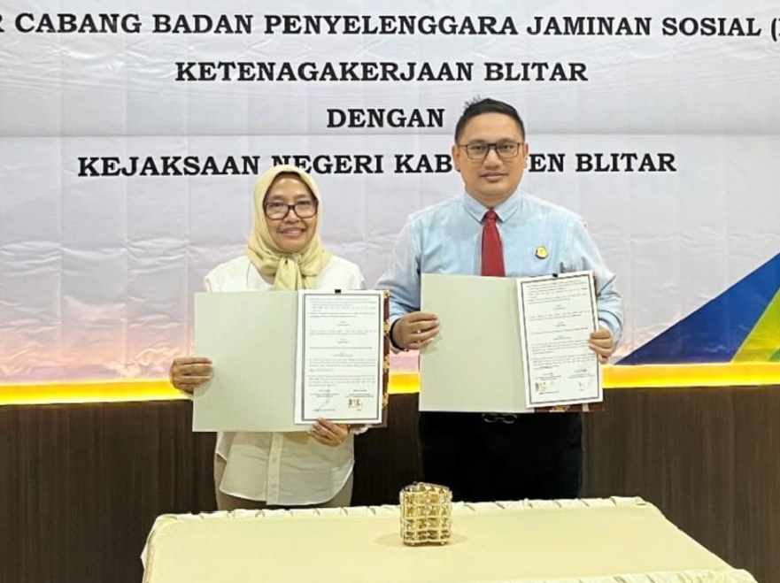 BIDIKNEWS-INDONESIA//Blitar – Kejaksaan Negeri (Kejari) Kabupaten Blitar dan BPJS Ketenagakerjaan Kabupaten Blitar menandatangani Nota Kesepahaman (MoU) terkait kerja sama di bidang Perdata dan Tata Usaha Negara (Datun).