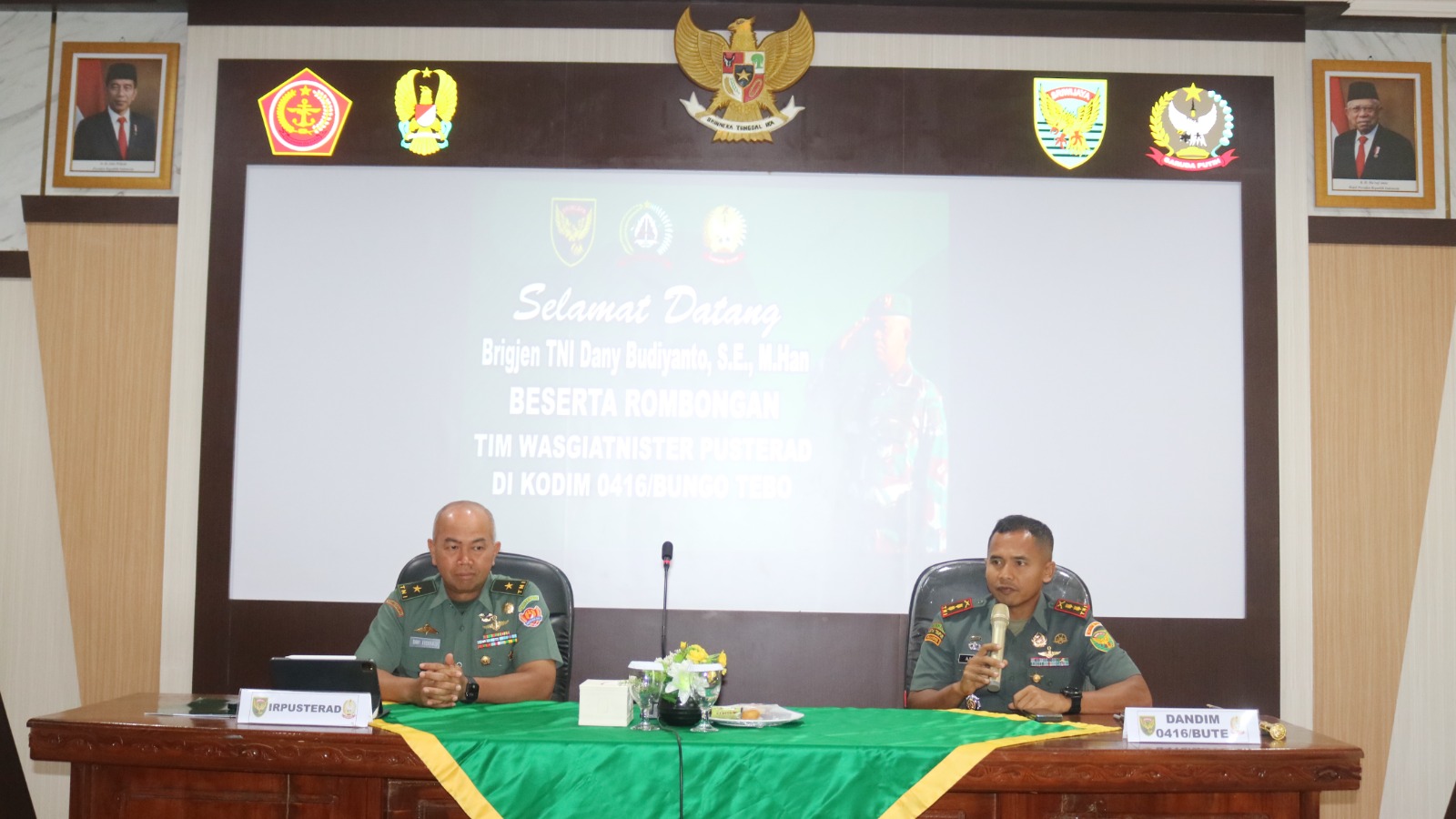 BIDIKNEWS-INDONESIA // KABAR TNI – Bungo – Kodim 0416/Bute menerima kunjungan kerja dari Tim Inspektorat Pusat Teritorial Angkatan Darat (Itpusterad) yang dipimpin oleh Inspektorat Pusterad, Brigjen TNI Dany Budiyanto, S.E., M.Han. Kedatangan tim tersebut disambut langsung oleh Dandim 0416/Bute Letkol Inf Arief Widyanto, S.E., M.Han, Rabu (5/6/2024).