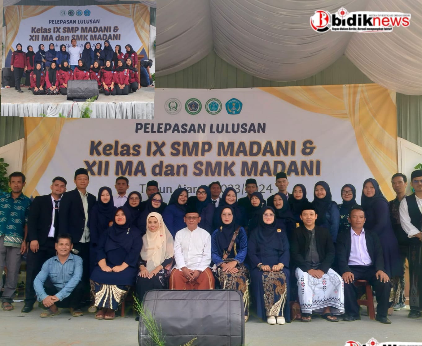 Bapak JENAAL MUTAQIN SH, S,PdI selaku kepala sekolah SMP Madani setelah kami komfirmasi bahwa pelepasan siswa siswi untuk SMP 67 siswa untuk MA ada 22 siswa dan untuk SMK ada 57 siswa jumlah keseluruhan ada 146 pelepaasan siswa beliau juga menyampaikan kepada siswa siswi agar tetap bisa melanjutkan pendidikan jangan sampai terhenti dan tetap buat bangga SMP,MA dan SMK Madani yang selama 3 tahun sudah menjadi tempat belajar jangan pernah lupa denagan guru guru yang telah mengajar selama ini” ungkpny
